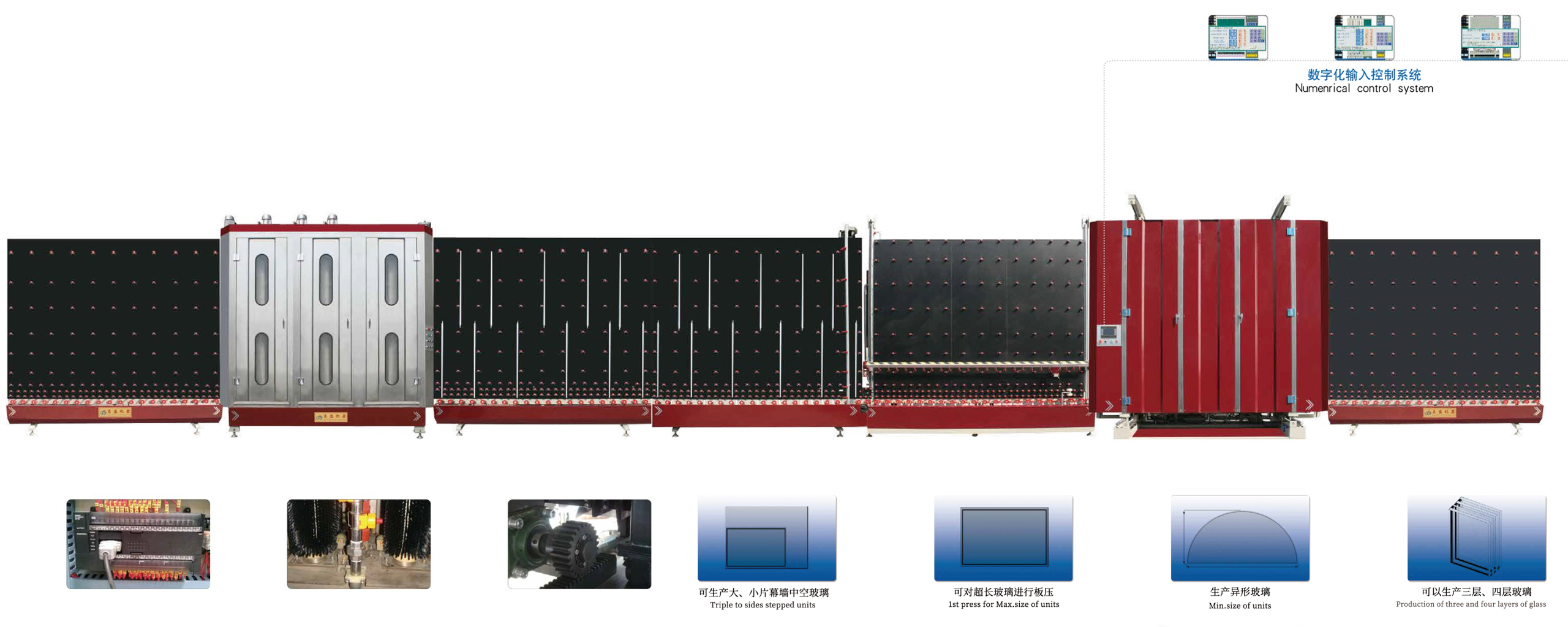 自動數控中空玻璃生產線(可生產LOW-E中空玻璃) 清洗機采用3對毛刷設計及對LOW-E玻璃專用毛刷避免膜損傷。
